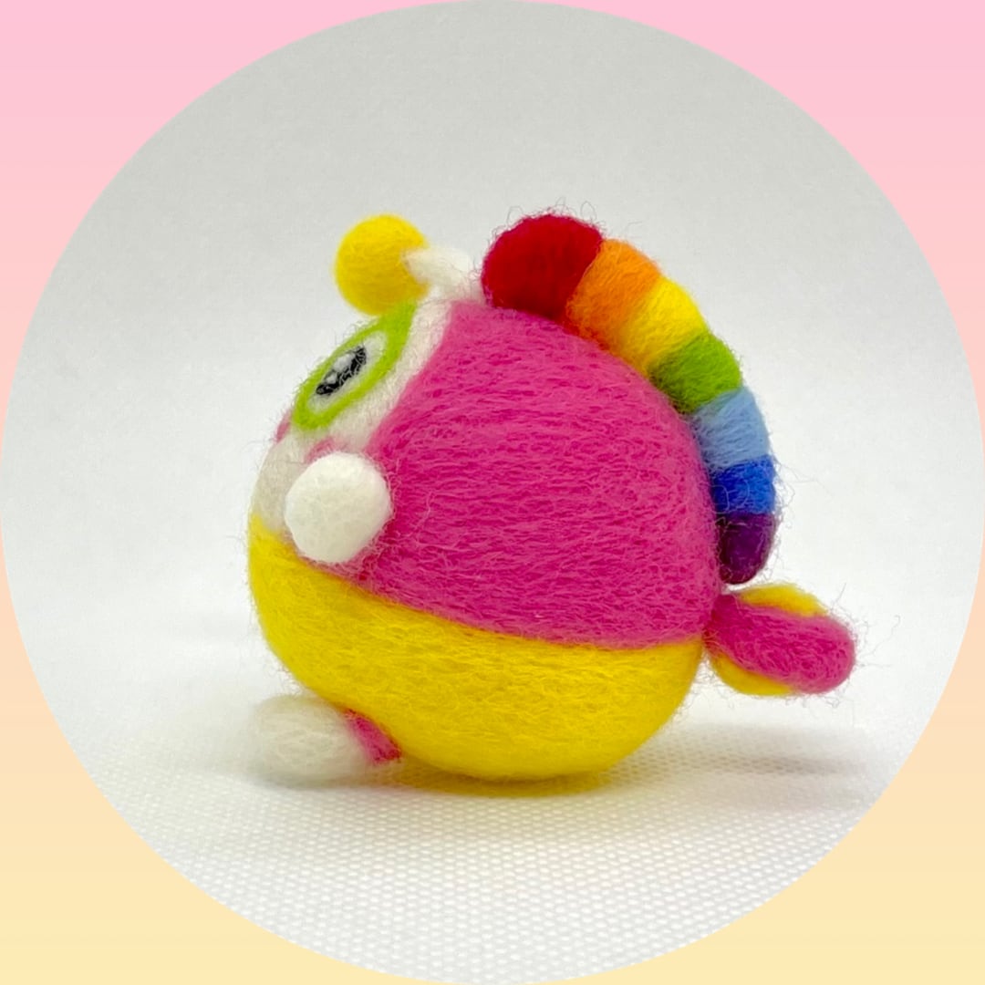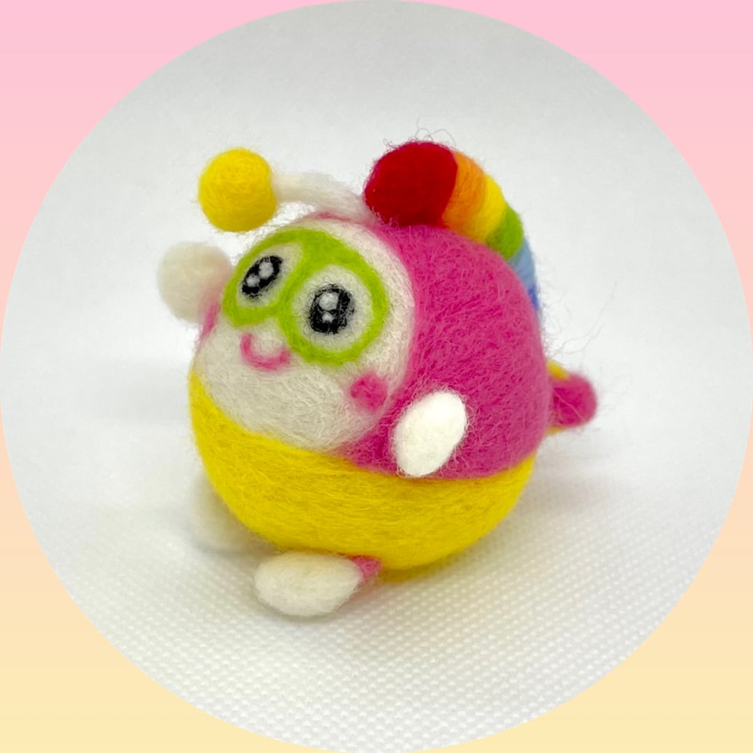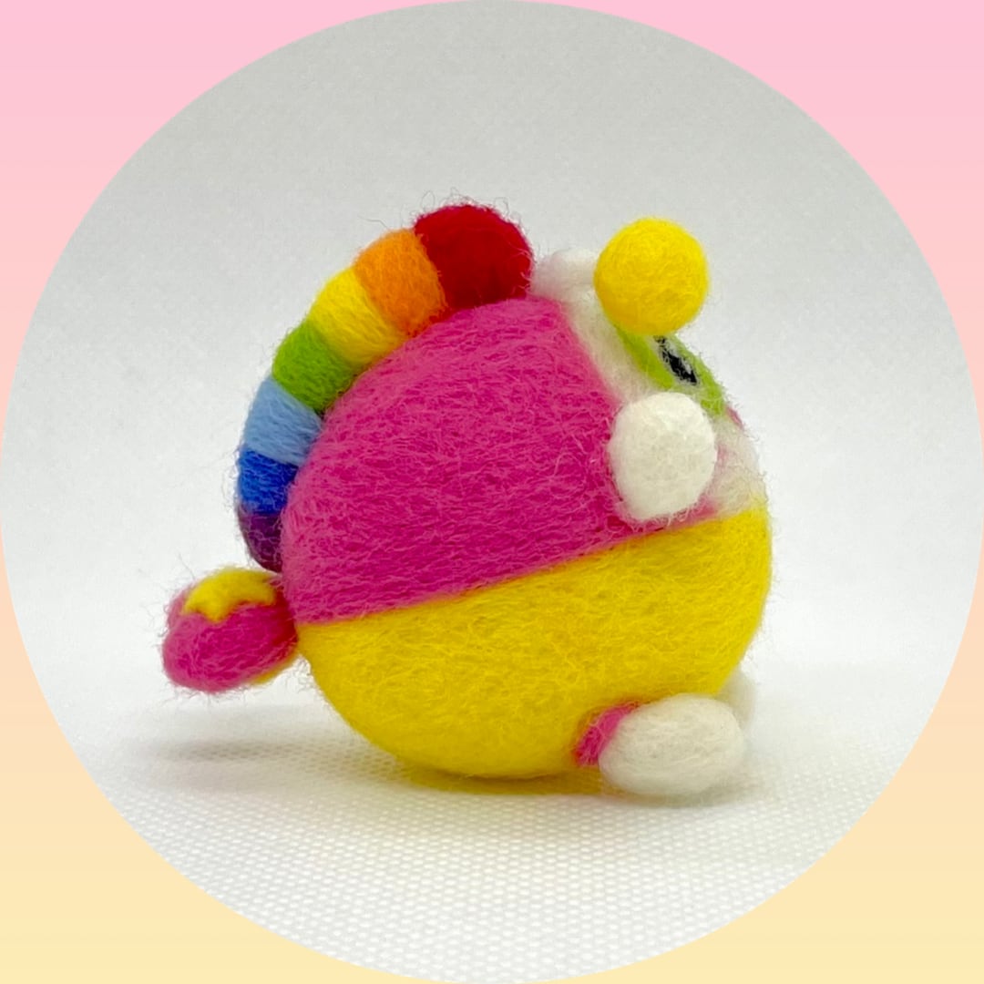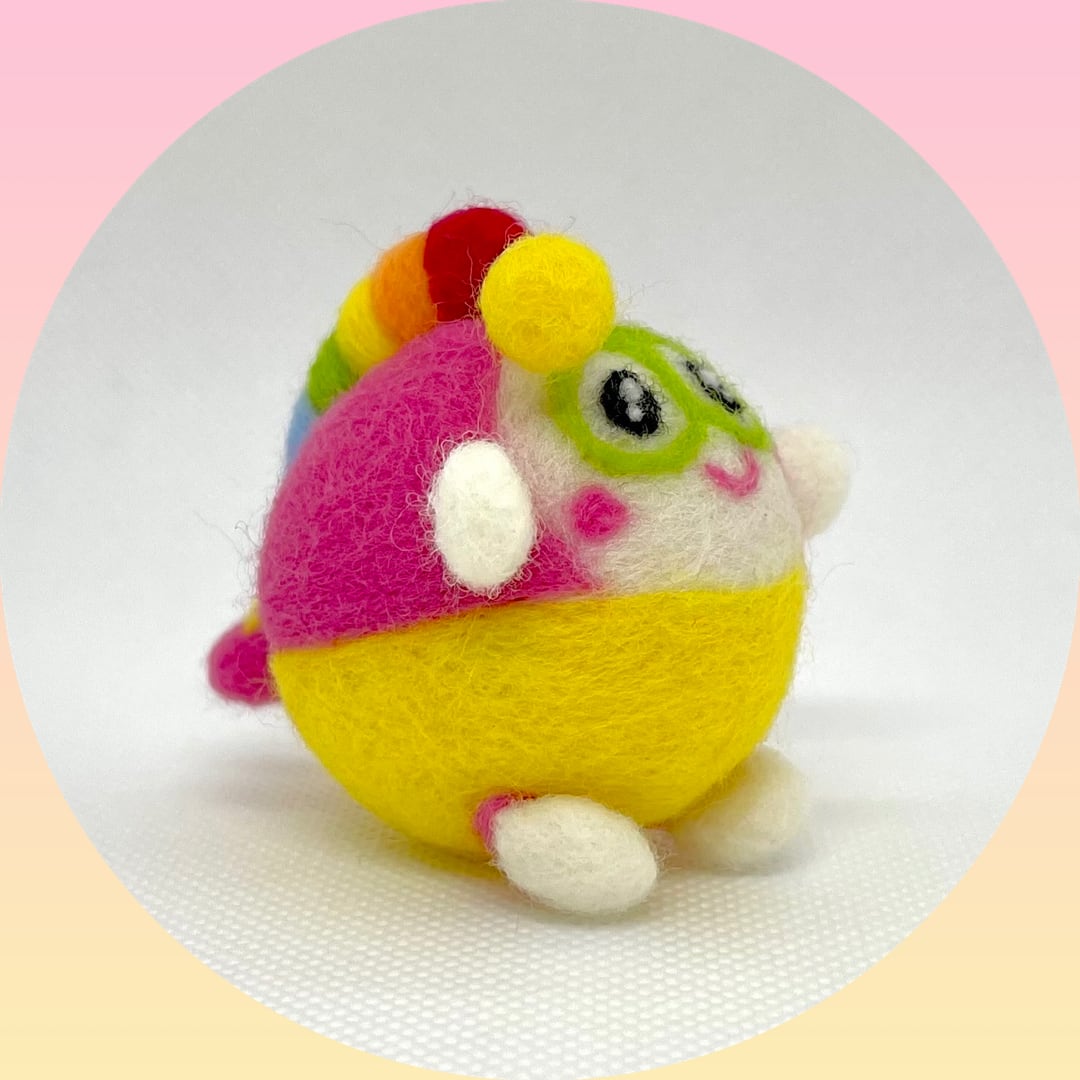 カラフルでふわふわでかわいい羊毛フェルトのプク丸ちゃん。