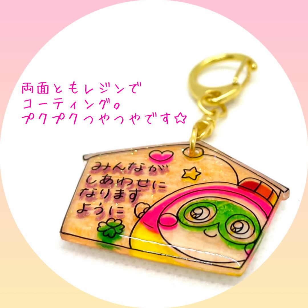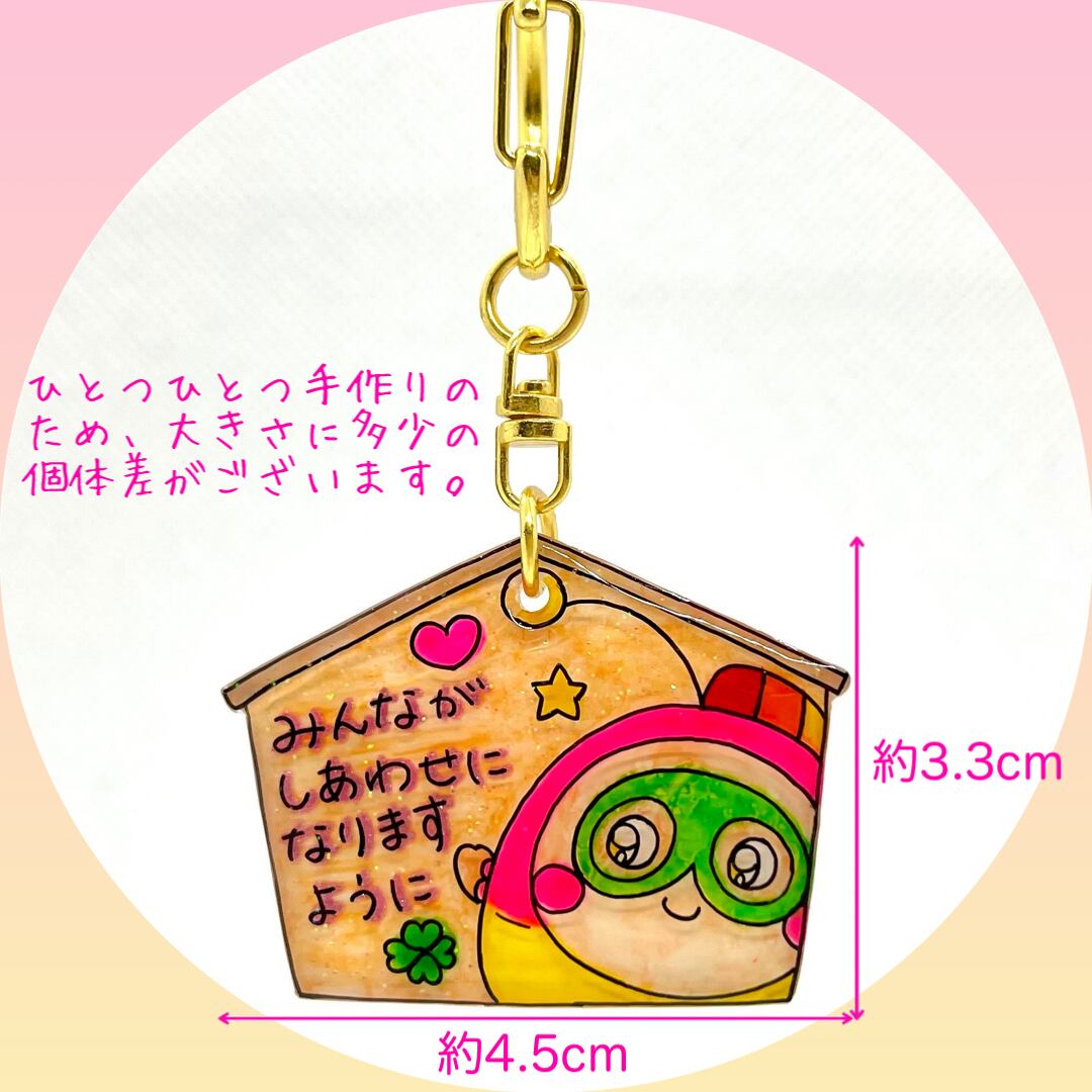 みんなの幸せを願うプク丸ちゃんの絵馬キーホルダー。
