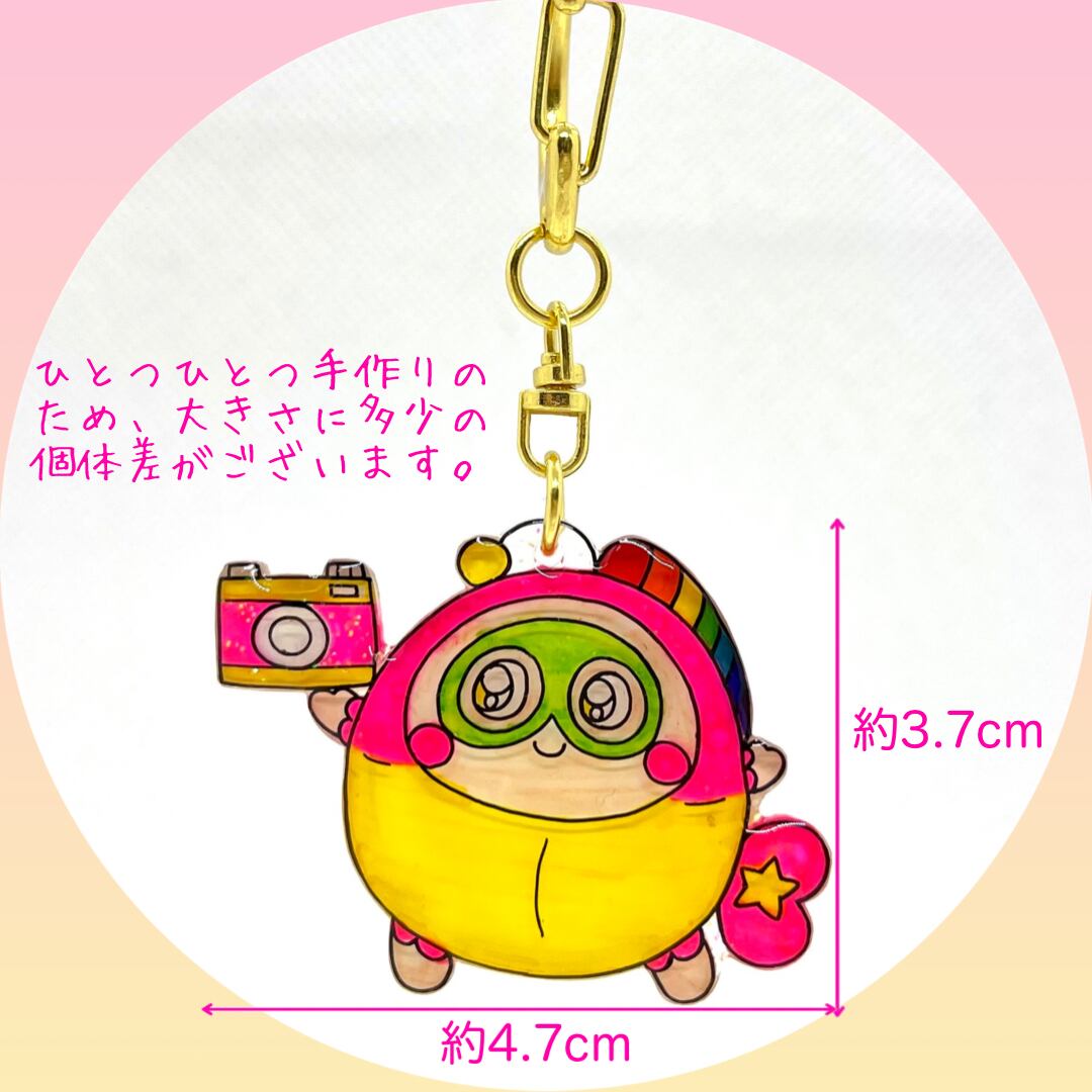 そんなプク丸ちゃんが、カメラを持ってニッコリ笑顔のキーホルダーです。