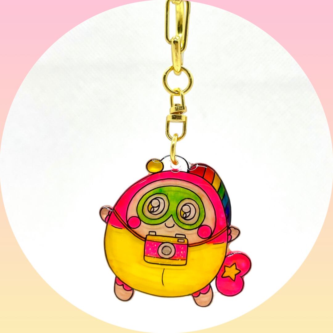 そんなプク丸ちゃんが、カメラと一緒にお出かけするキーホルダーです。