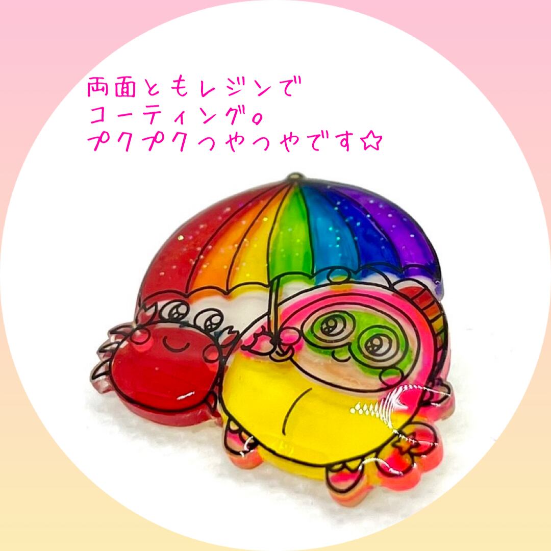 ブローチ カニさんと虹の傘 ★プク丸ブローチ★