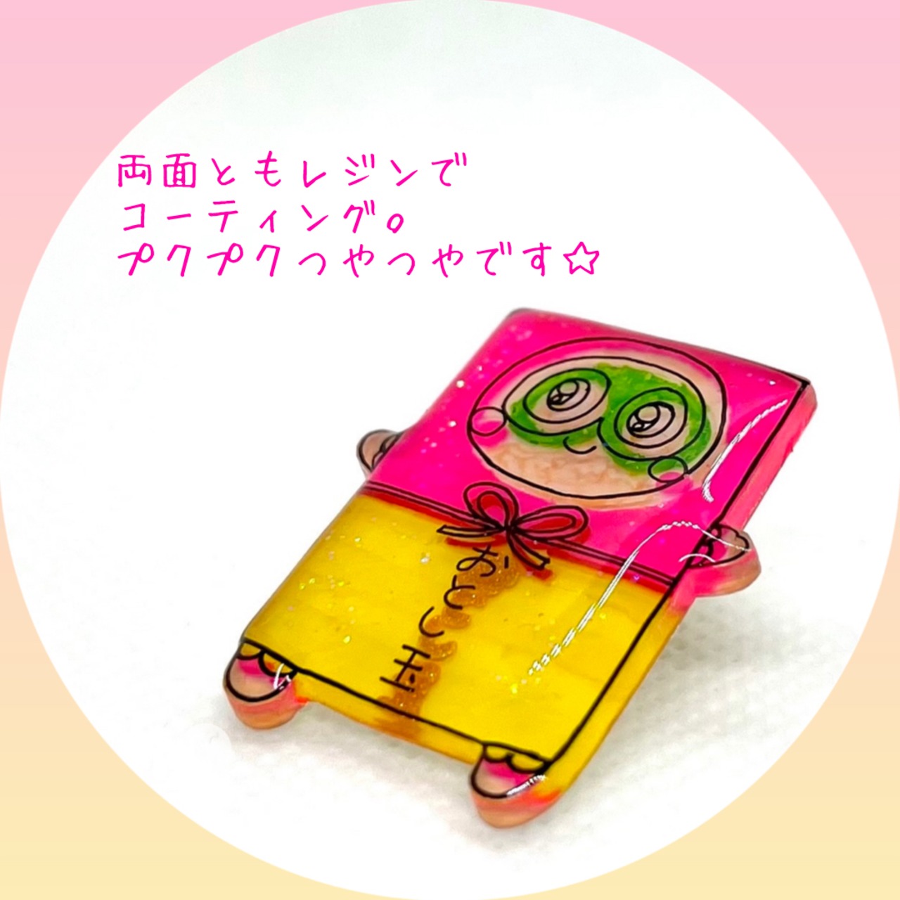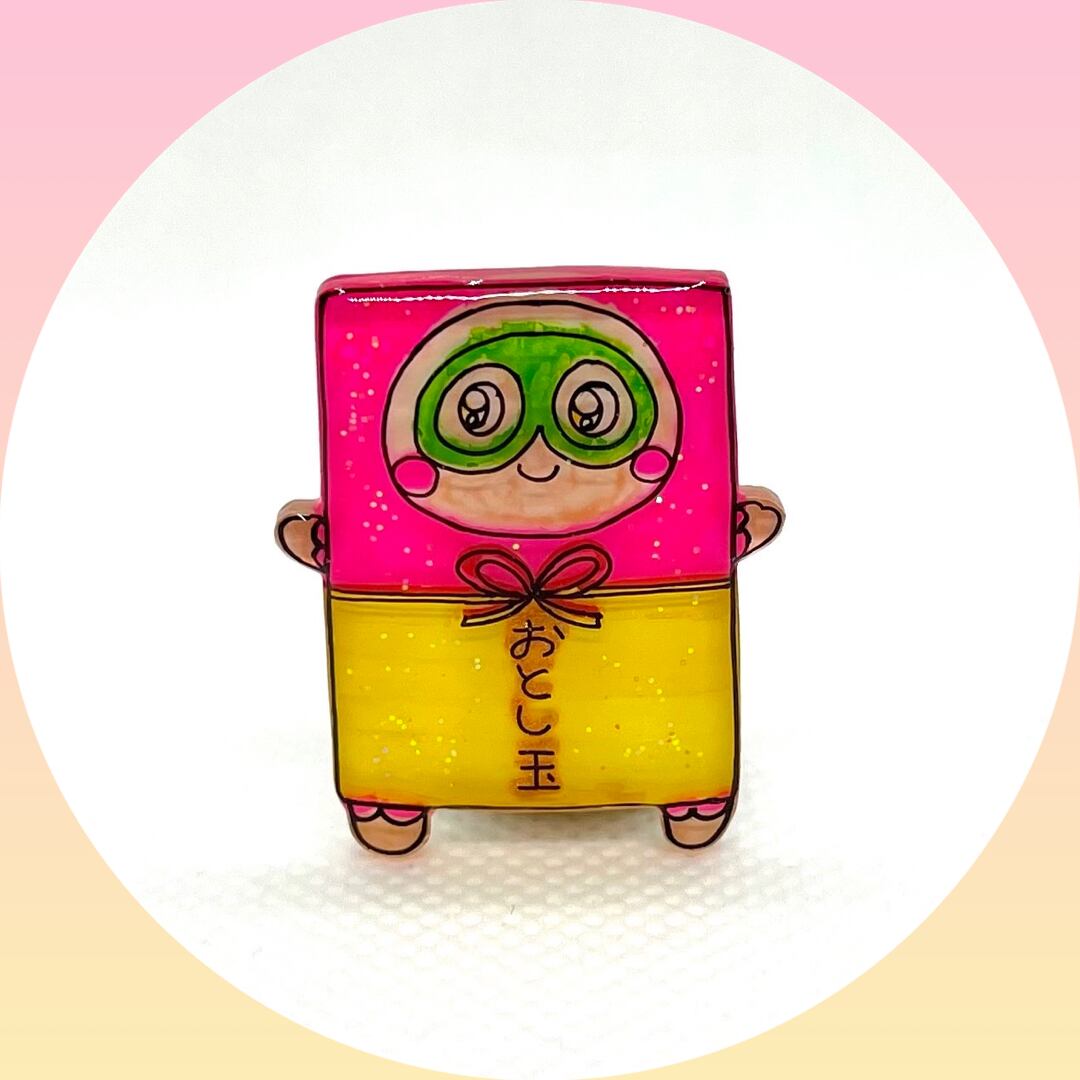 お年玉に変身したプク丸ちゃんのピンバッジを作りました。