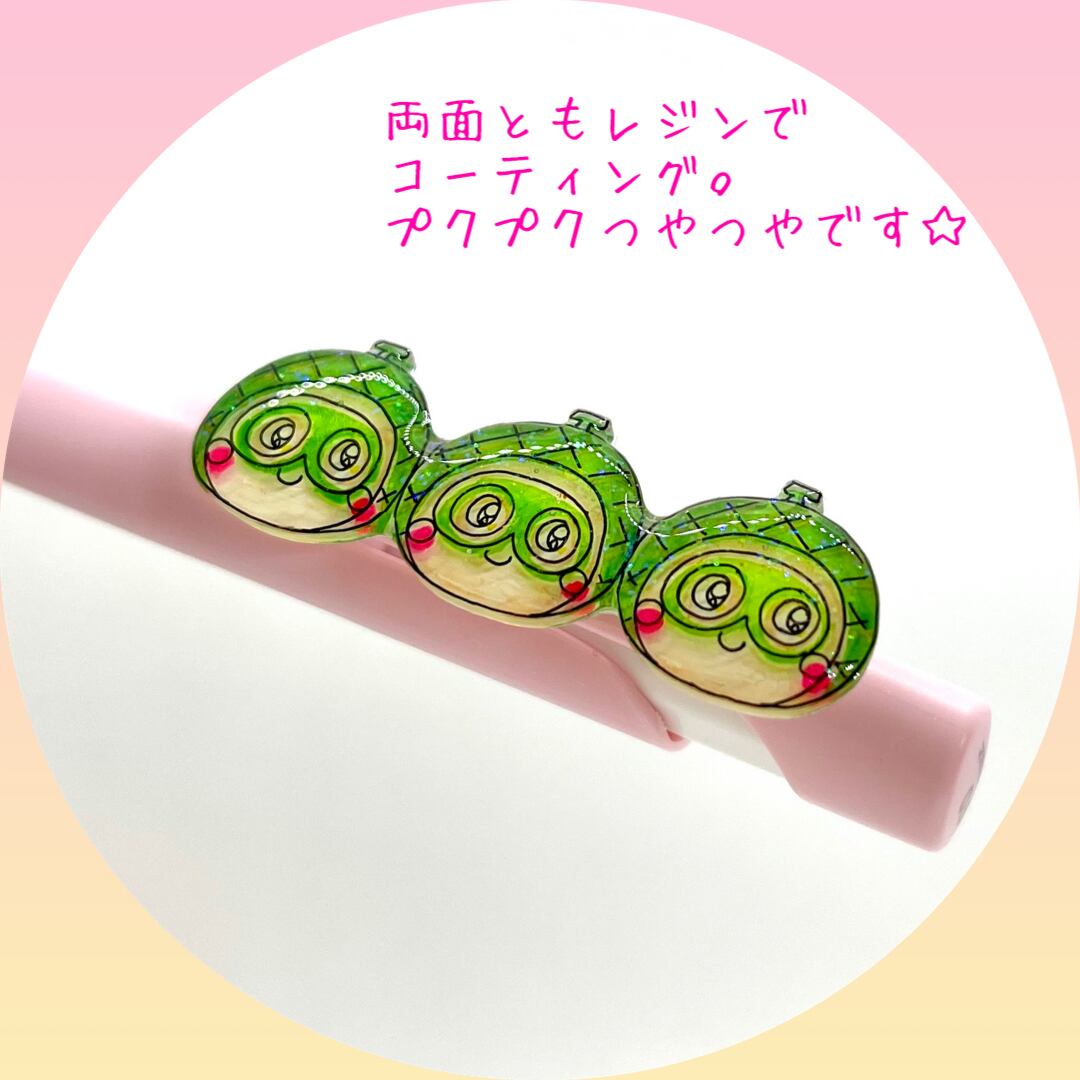 プラバンはひとつひとつ手描きし、両面をレジンでコーティング。プクプクつやつやです☆
