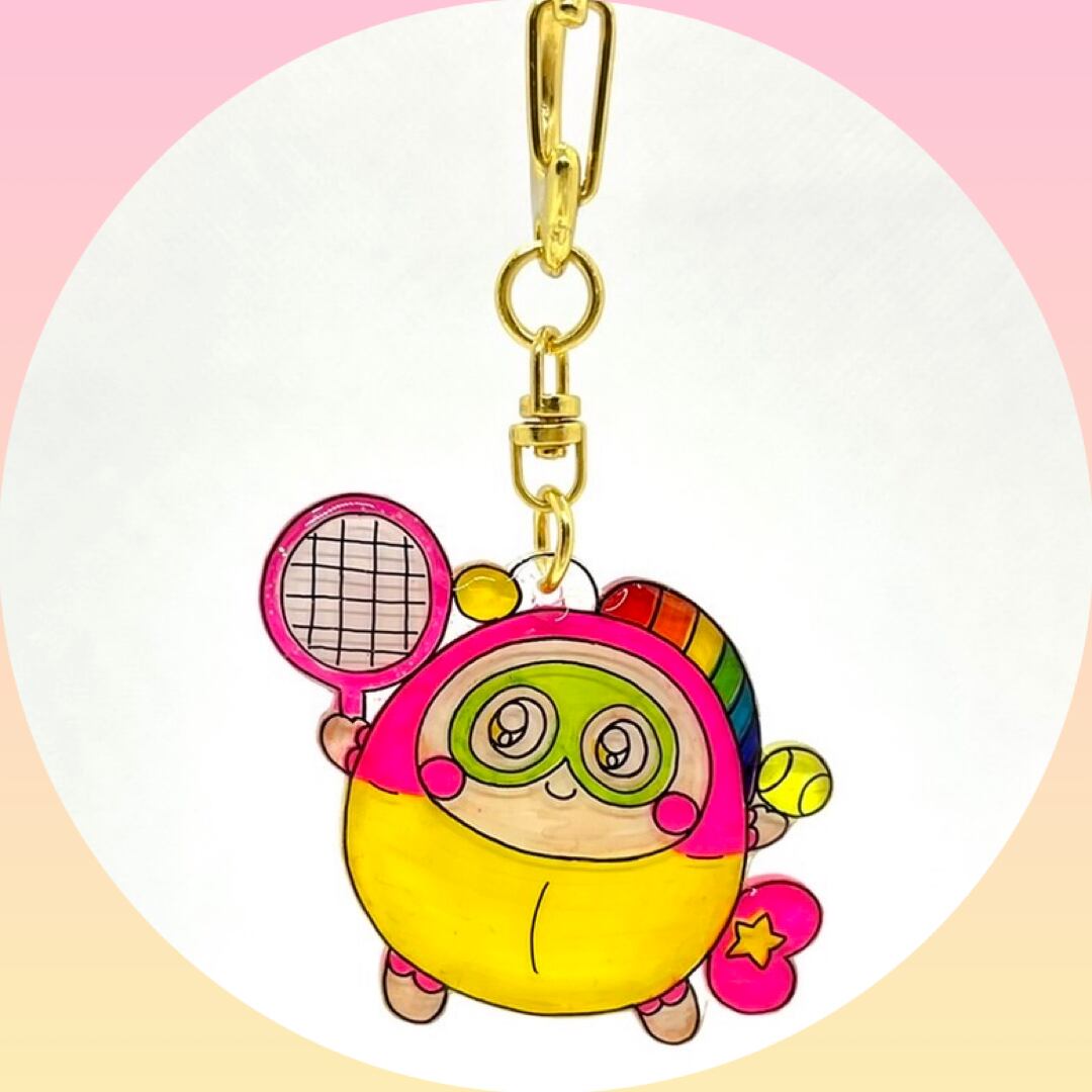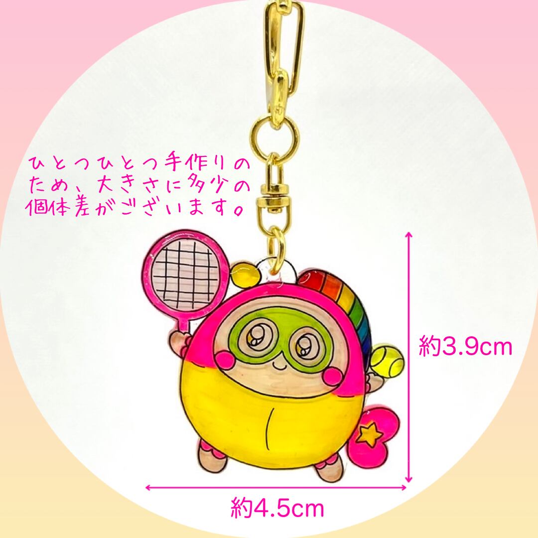 ということで、プク丸ちゃんがテニスに挑戦するキーホルダーです。