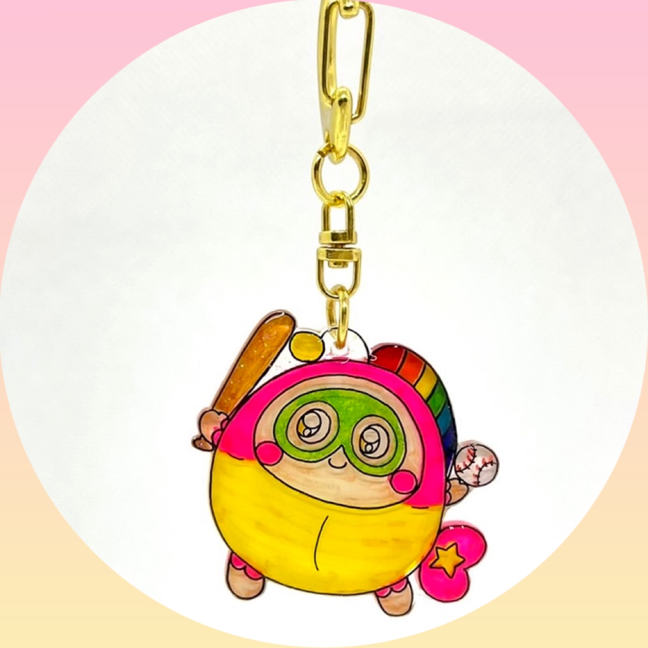 ということで、プク丸ちゃんが野球に挑戦するキーホルダーです。