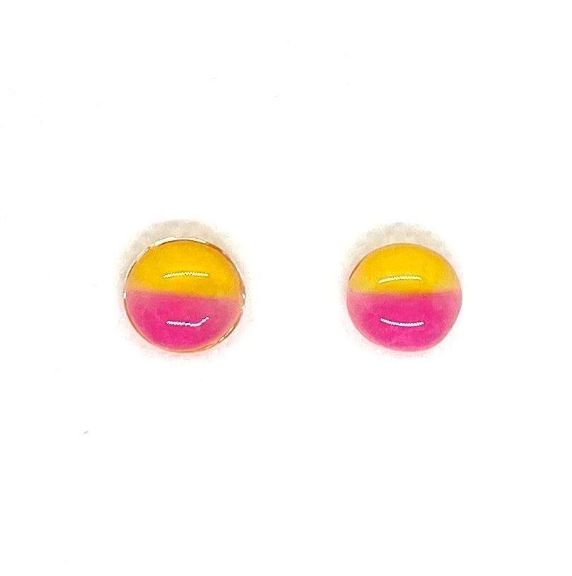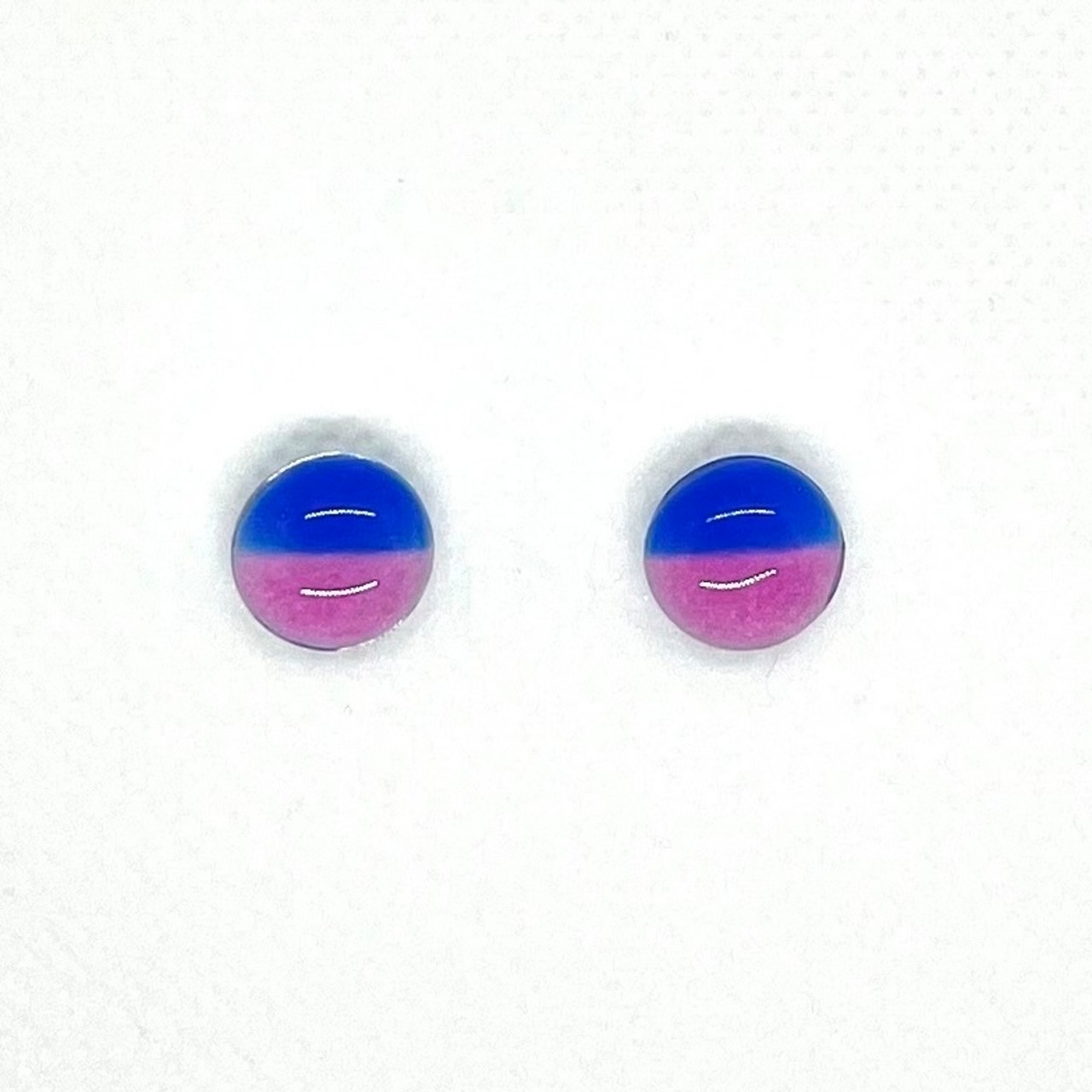 【受注製作】★プク丸ピアス/イヤリング★ 虹色×ピンク色