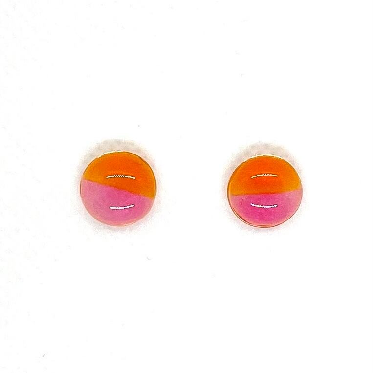 ということで、虹の七色×ピンク色のバイカラーのピアス&イヤリングを作りました。